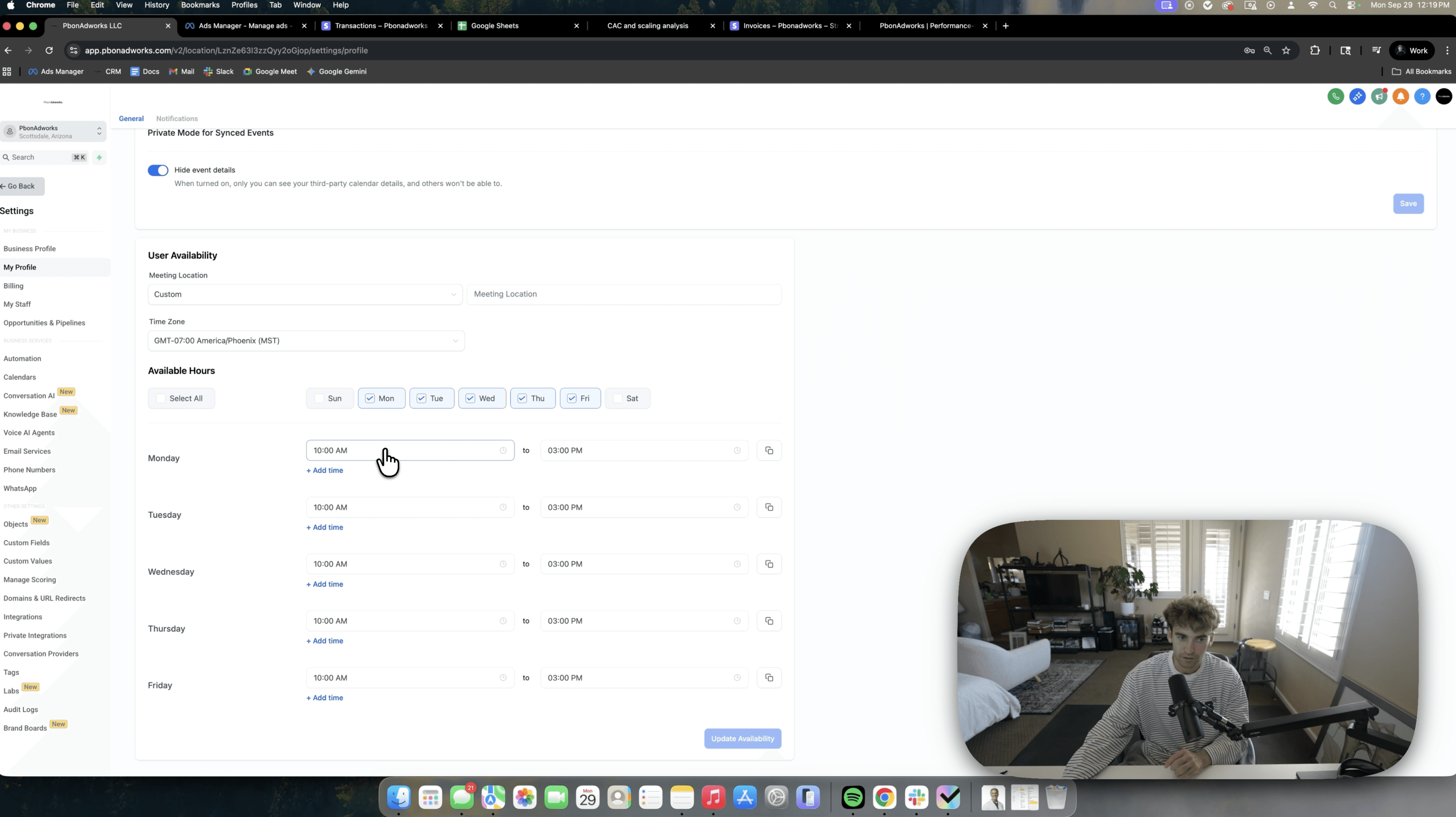 Block off calendar availability